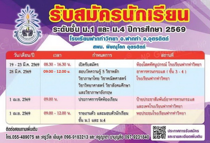 ยินดีต้อนรับเข้าสู่เว็บไซต์ โรงเรียนฟากท่าวิทยาค่ะ...
